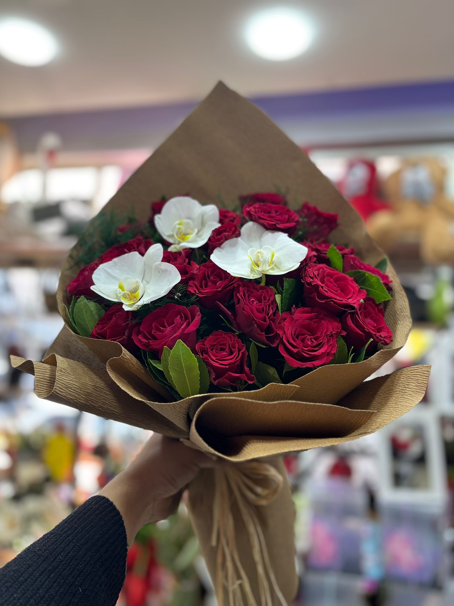 Zarif ve etkileyici tasarımıyla hazırlanan Kırmızı Gül ve Beyaz Orkide Buketi, kırmızı güllerin romantik görünümü ve beyaz orkidenin asil zarafetiyle oluşturulmuş özel bir çiçek aranjmanıdır. Şık doğal ambalajı sayesinde sevgililer günü, yıldönümü, doğum günü veya romantik sürprizler için mükemmel bir hediye seçeneğidir.